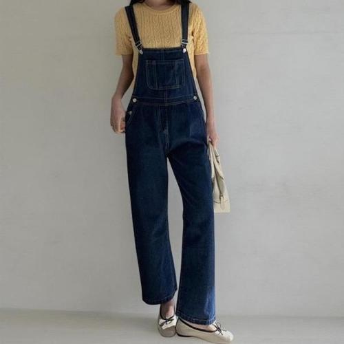 [옷자락]여성 키치 무드 청바지 멜빵 오버롤 스트레이트 팬츠
