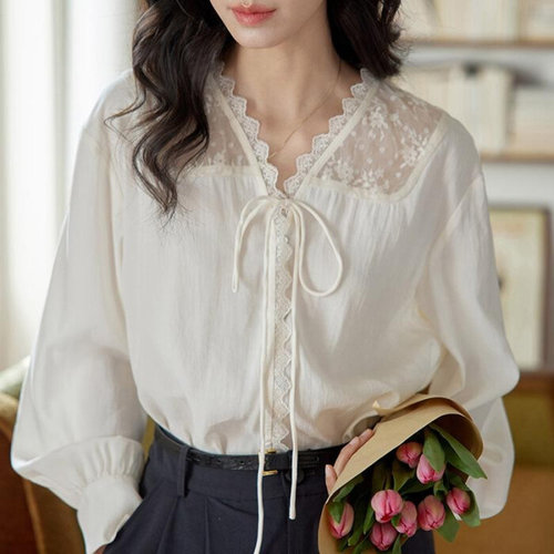 제로투올샵2 / 베이지 레이스 긴팔 블라우스 베이지 M