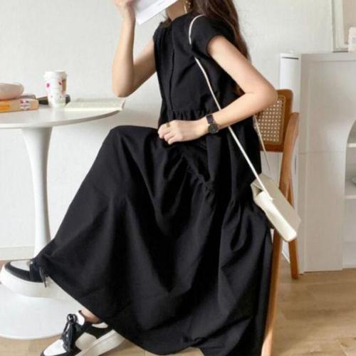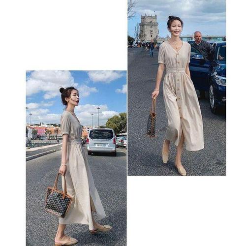 [에이치플러스몰]여성 베이지 컬러 여름 반팔 셔츠 롱 원피스 데이트룩