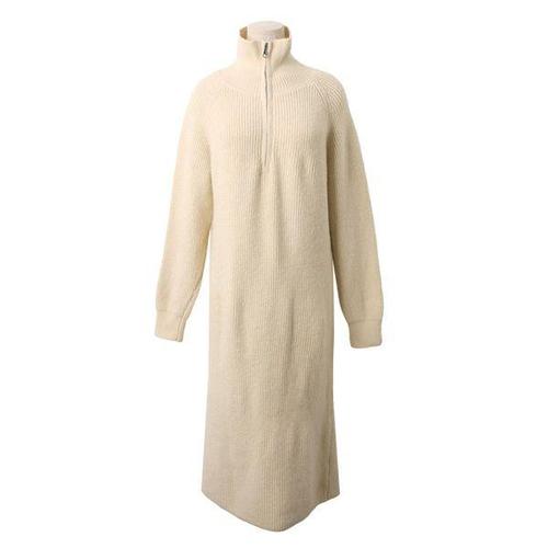 [샵앤]여성 반집업 하이넥 나그랑 골지 니트 롱 원피스 MCR-WDR-4963-베이지