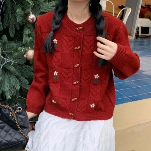 [셀럽하우스]꽃 DBBI3941 베이직 여성가디건 무늬 자수 올데이 라운드 여성