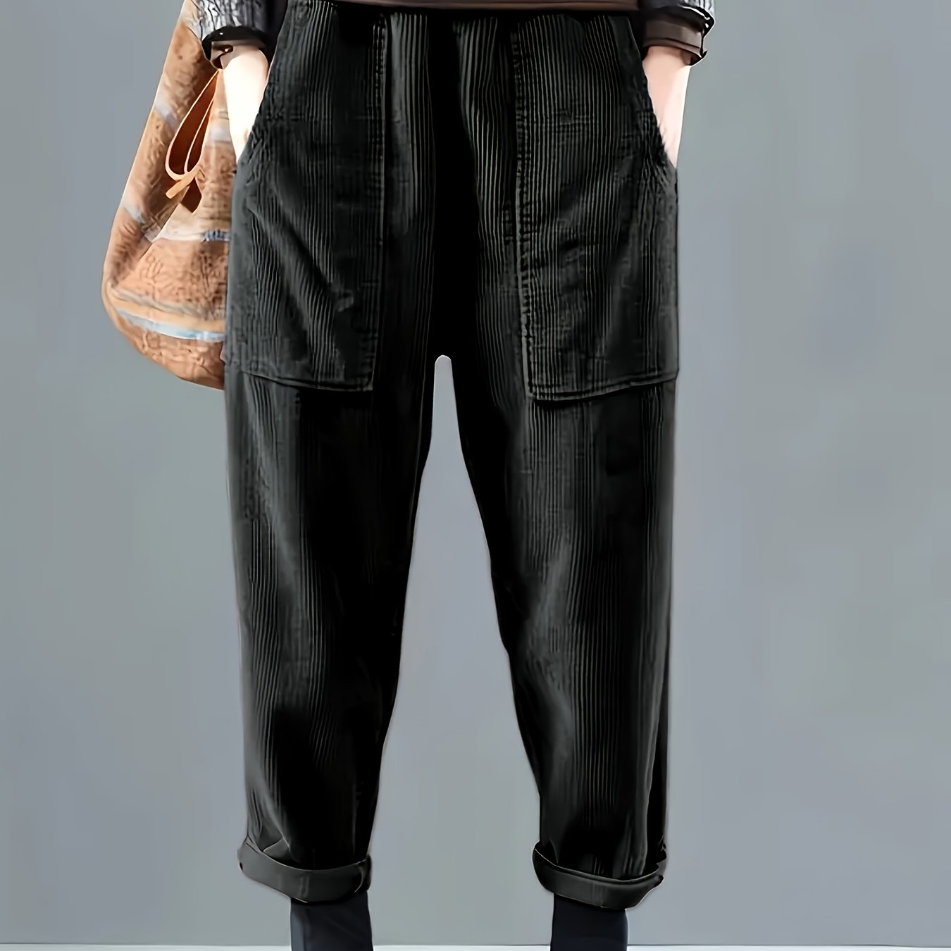 TEMU 여성용 캐주얼 코듀로이 긴 바지, 편안하고 다재다능한 포켓 디자인 특징.