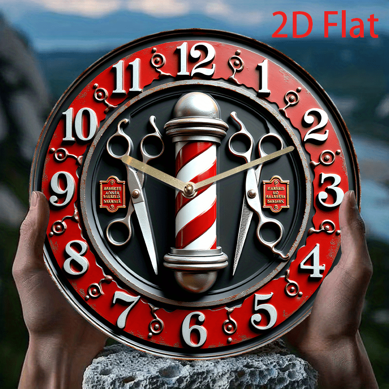 TEMU 8인치 무소음 벽시계 - 금속 미용 가위와 빗 아트가 있는 2D 플랫 아크릴 쿼츠 디자인, 배터리 작동(AA 포함되지 않음), 홈/살롱/카페 장식용 - 독특한 선물 아이디어, 시계 벽 장식, 이발사 테마 디자인, 메탈릭 악센트