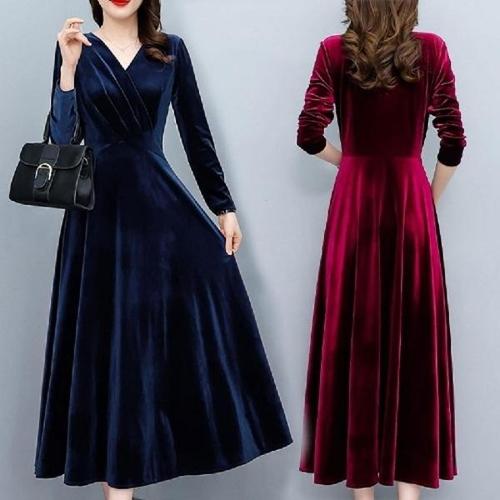 [엄지척](CESS) 9758 브이넥 벨로아 롱원피스 2 롱 여성 맥시_19951372_667501