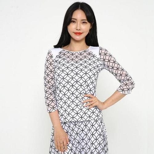 노브패리스 BGR2989 레드 이중 보석 망사 티셔츠 66에서99 라인 밸리 라틴 모던 웰빙 뱃살 군살커버 칠부 사계절 여자