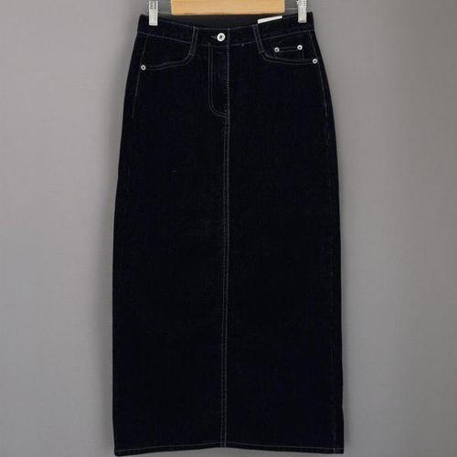 [신상오픈런]여자 벨벳치마 뒤트임 일자 스티치 블랙 데님 롱스커트