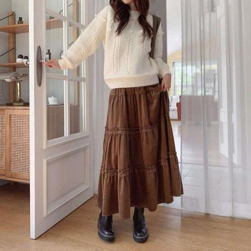 벨벳 2350 코듀로이 모먼트 롱 퍼 플레어 융털 스커트