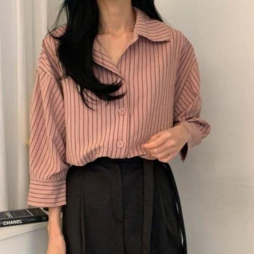 [신상오픈런]스트라이프셔츠 겨울 여성 루즈핏 도톰한 벨벳 남방 (28812158)