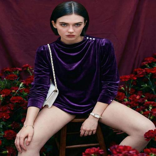[드레스허그]퍼플즈 벨벳 블라우스 탑
