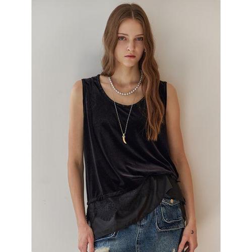 [마쟈]비즈 네크라인 벨벳 슬리브리스 탑