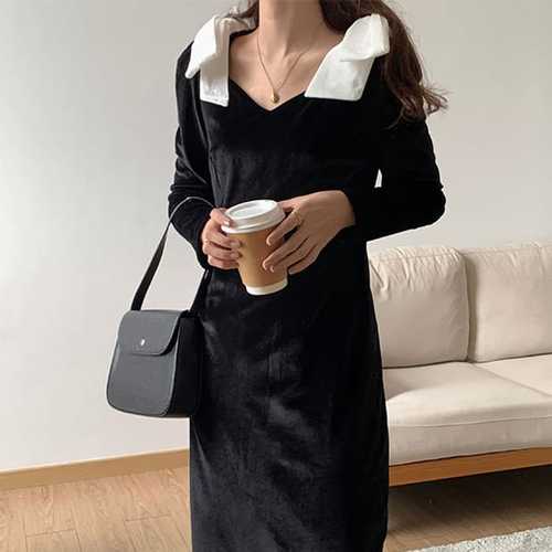 고급스러운 벨벳 날씬해 보이는 긴팔 원피스 추동 마이야르 스몰 블랙 스커트 슬림 머메이드 스커트