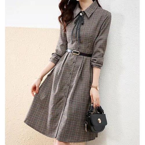 [패션시그널]벨트포함 브릿치넥 체크셔츠원피스 BF7C5F