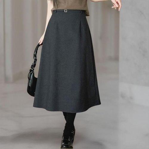 [옷자락]여성 레이온 신축성 벨트 포인트 A라인 겨울 롱 스커트