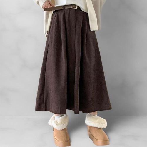 [옷자락]여성 빈티지 코듀로이 벨트 플레어 롱 치마