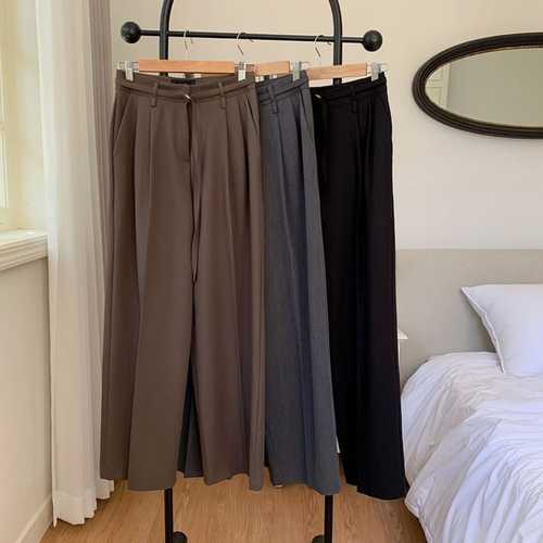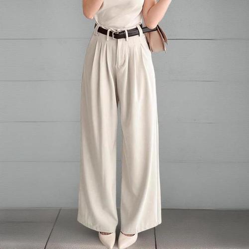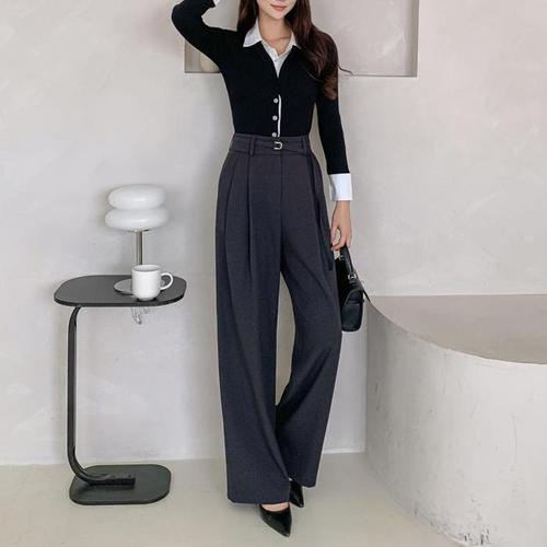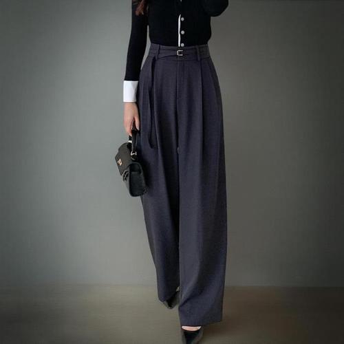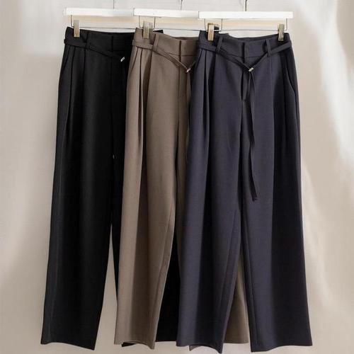 [신상오픈런]여성용 핀턱 벨트 세트 와이드 롱 슬랙스 오피스 스타일 (42009511)