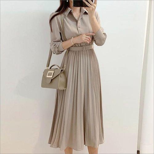 여자 플리츠 페미닌 원피스 하객룩 롱 주름 허리벨트 WFLDHXR