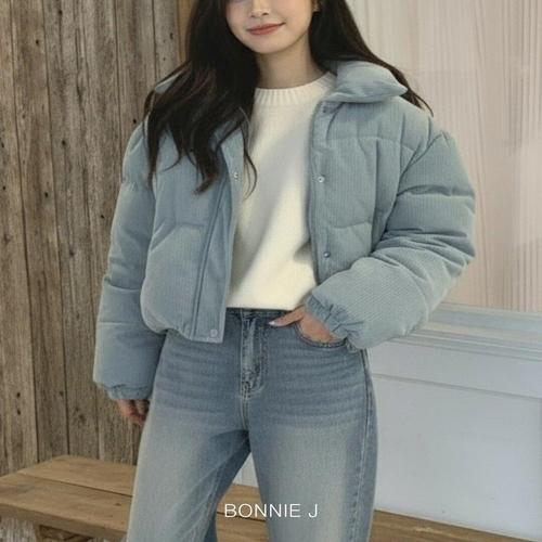 [보니제이]마시멜로 코듀로이 골덴 뒷밴딩 오버 하프 패딩 점퍼