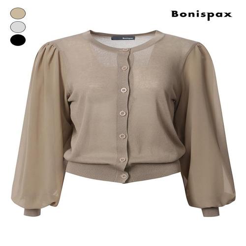 [보니스팍스]벌룬 슬리브 배색 가디건 (XP9KG001M0)