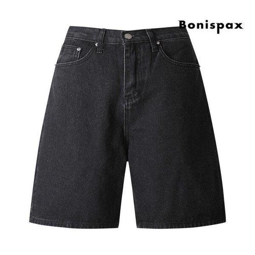 [보니스팍스]베이직 블랙 데님 하프 팬츠 (XP4PT014M0)