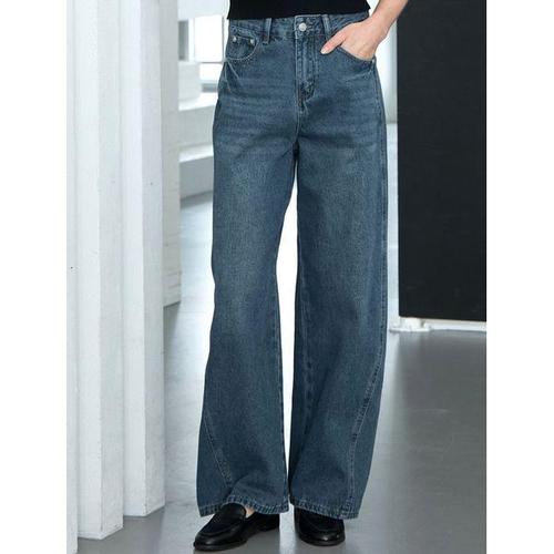 [옷자락]여자 반밴딩 배기핏 와이드 통큰 데님팬츠 청바지