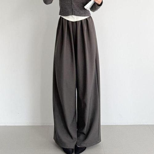 [에이치플러스몰]여성 골지 와이드 팬츠 1P 밴딩 플리츠 주름 통바지