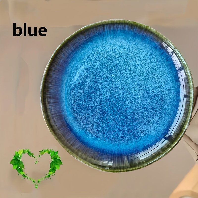 TEMU 사계절용 - 운몽 비정형 접시 - 블루 앤 플레임 세라믹 디자인, 파스타 샐러드 과일 접시로 완벽, 패셔너블한 식기, 작가 제작 도자기, 그라데이션 비정형 세라믹 접시, 스테이크 접시, 레스토랑 파스타 접시