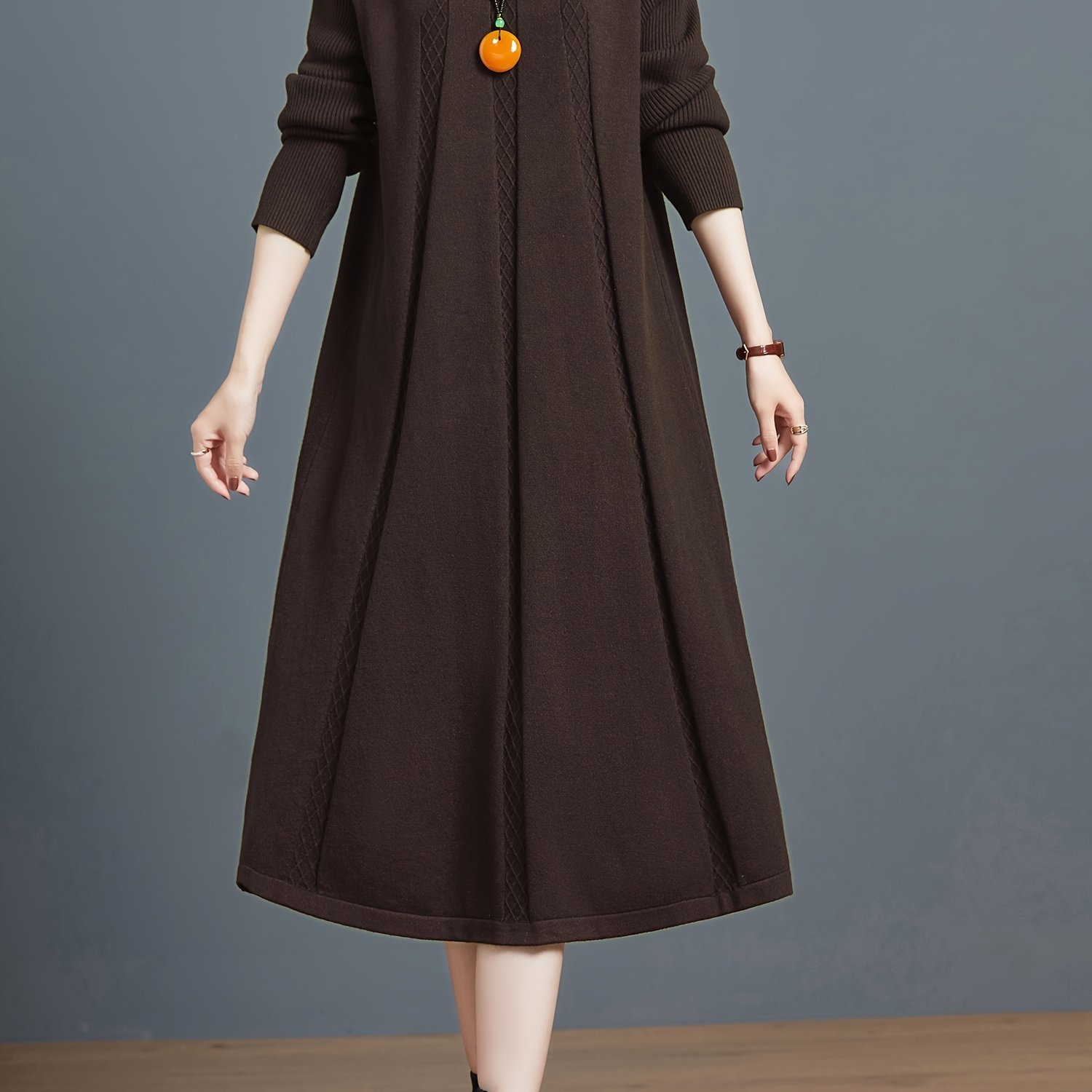 TEMU 여성용 패브릭 드레스, 봄/가을 긴소매 솔리드 컬러 라운드넥 드레스, 세련된 우아한 다용도 무릎길이 드레스, 캐주얼 외출 및 여행용, 겨울 코트 레이어링 드레스, 부드럽고 피부에 친화적인 텍스처 원단, 가볍고 통기성 좋은 스웨터 드레스, 여성 선물, 크리스마스 선물