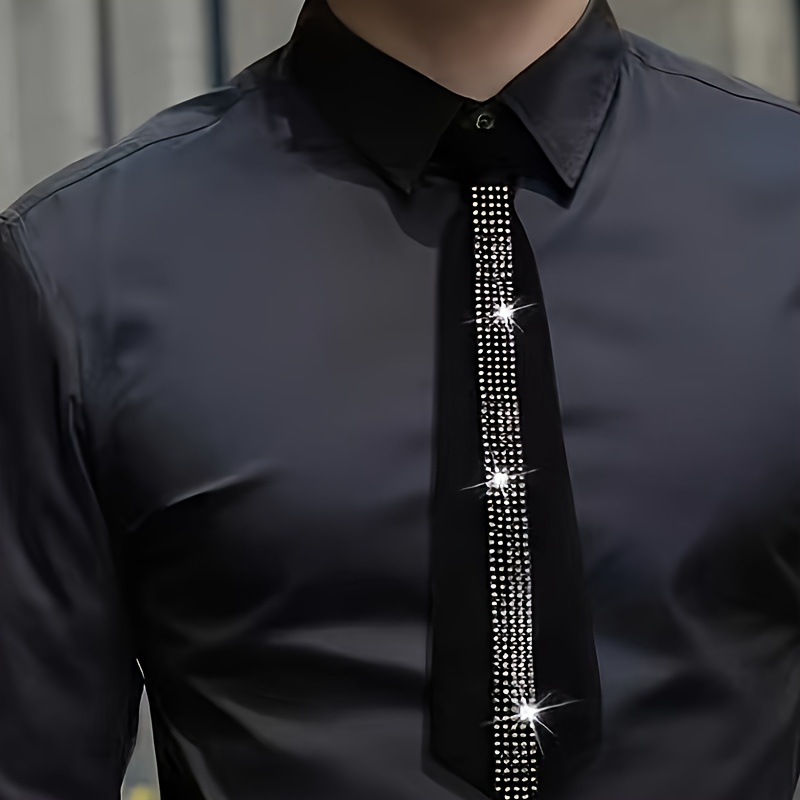 TEMU 조절 가능한 남성용 라이트 비즈니스 넥타이, 반짝이는 라인스톤 장식 - 우아한 블랙 & 화이트 디자인, 비즈니스 또는 공식 행사에 완벽, 공식 행사 액세서리|세련된 스타일|내구성 있는 패브릭 넥타이