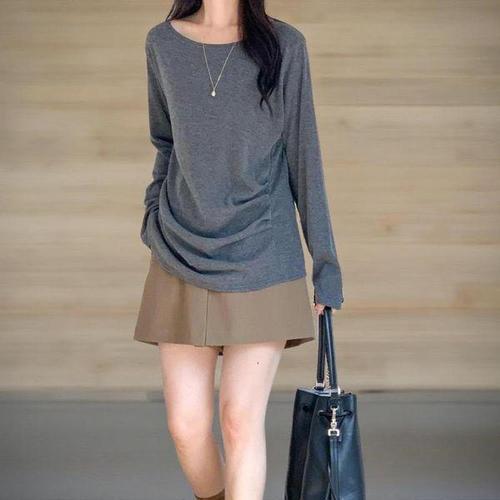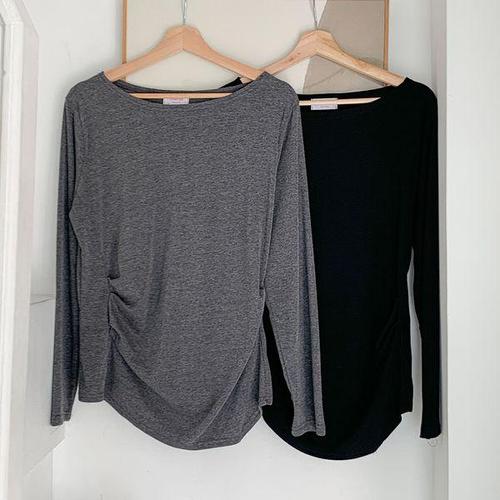 [신상오픈런]여성용 루즈핏 보트넥 티셔츠 옆셔링 빅사이즈 이너웨어