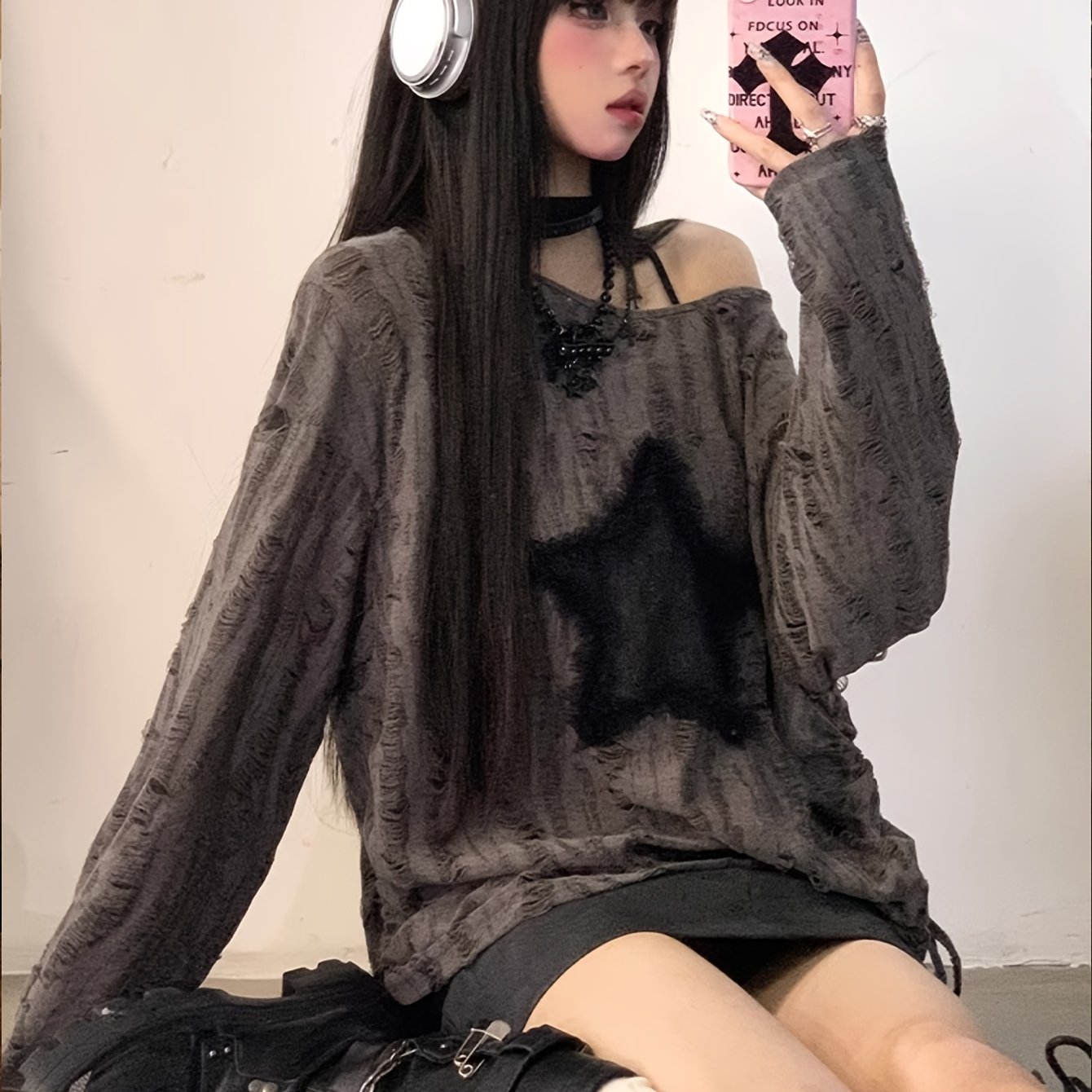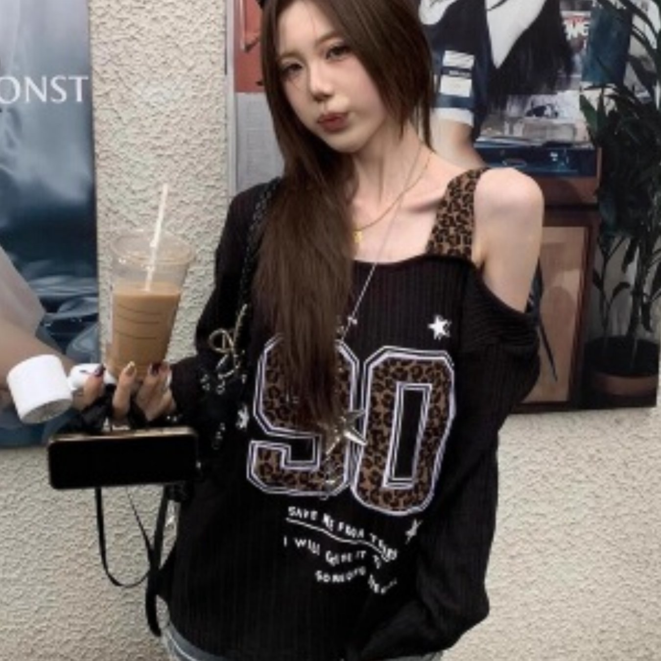 TEMU 오프숄더 긴팔 티셔츠 가을 루즈핏 슬림핏 핫걸 프린트 서스펜더 탑
