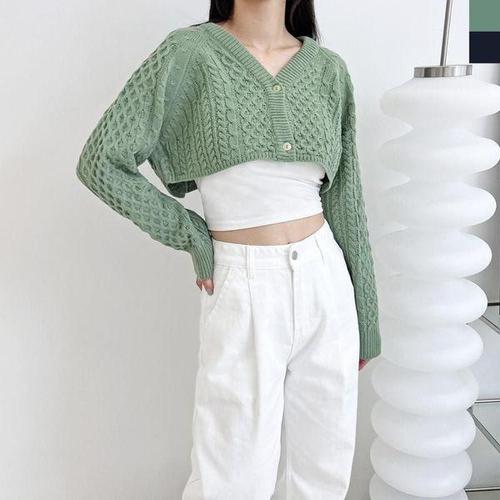 SOUP 세이브존07 여성 브이넥 숏 니트 가디건 OA5GDT1