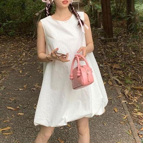 [에이치플러스몰]민소매 밑단 볼륨 러블리 미니 원피스
