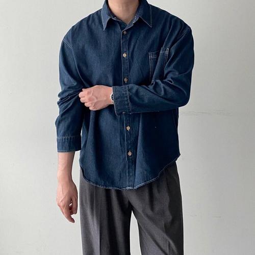[모노폴로지]데님 오버핏 봄 가을 사계절 청남방 긴팔 캐주얼 레이어드 진청 중청 청난방 2color