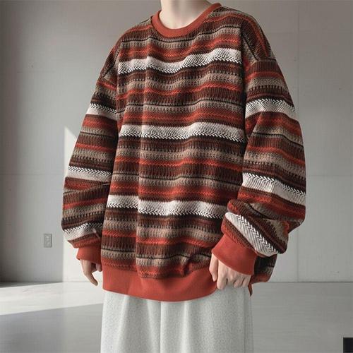 (당일출고) 오버핏 에스닉 스트라이프 단가라 봄 가을 니트 맨투맨 1 WFKMR6S