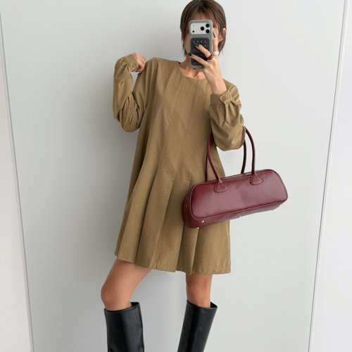[옷자락] 여자 봄데이트룩 플리츠 라운드넥 결혼식 미니원피스