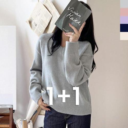 [에이치플러스몰]브이넥 여자니트티 정장 롱 카라넥 라운드 기본핏 봄
