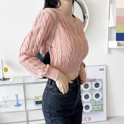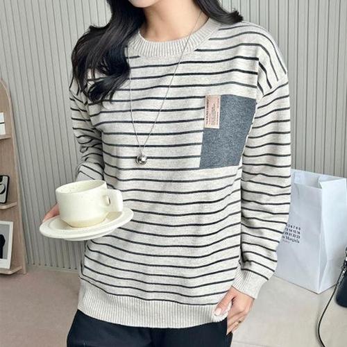 [에이치플러스몰]여자니트 롱니트 카라넥 대학생 모임 니트 티셔츠 봄