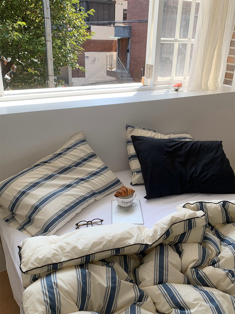 [비비홈] 런던 스트라이프 고밀도 순면 양면 차렵이불 4컬러(SS/QK/LK)(극세사/사계절/봄여름)
