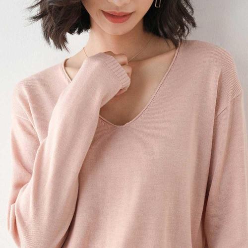 여자 봄 데일리 룩 간절기 브이넥 티셔츠 니트 코디 WE4FA0E