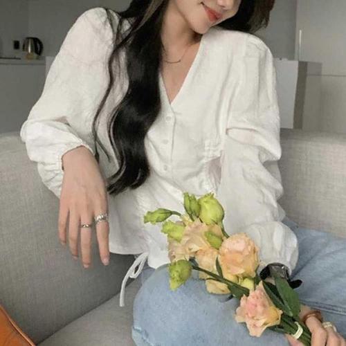 [셀러허브_여성트랜드패션]Rly 여자 데이트 룩 코디 봄 나들이 브이넥 블라우스