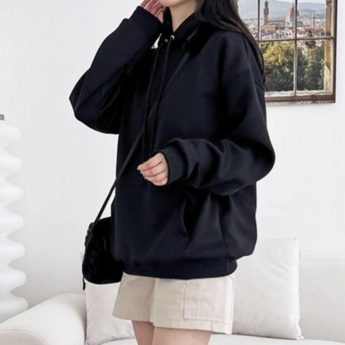 여성 오버핏 무지 후드티 빅사이즈 봄 가을 티셔츠 (WFHTEZM)