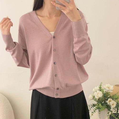 [옷자락] 여자 봄 울니트 브이넥 데일리룩 언발버튼 가디건