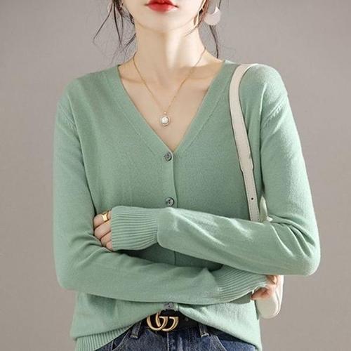 [엄지척]여성 브이넥가디건 캐주얼 심플한 가디건 봄 가을카디_19806481_667501