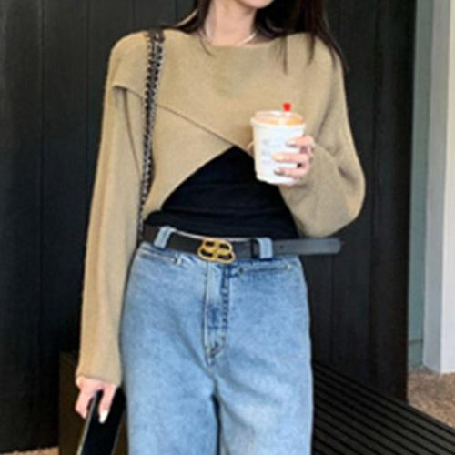 [셀럽하우스]나들이 ZKQU3630 여성 데이트룩 가을 봄 베이지 크롭 상의니트