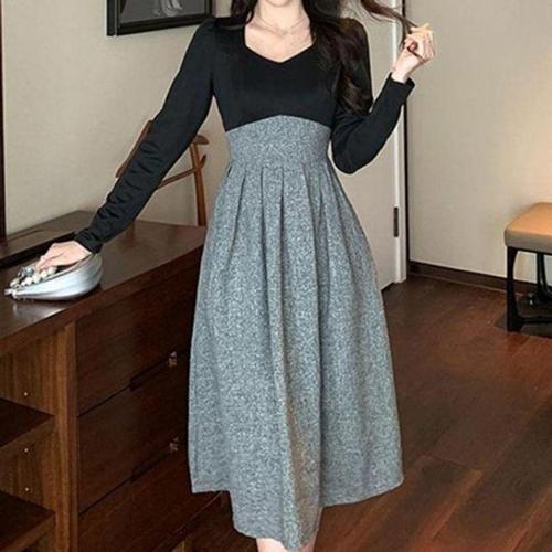 [셀럽하우스]그레이 BNWE0771 가을 하객룩 배색 봄가을원피스 나들이룩 원피