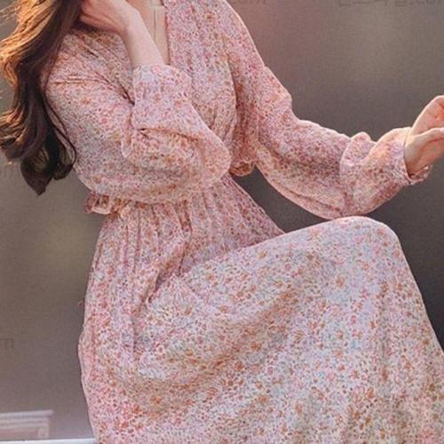 [에이치플러스몰]롱원피스 플라워 캐주얼 여자 쉬폰 필수템 봄 하객룩
