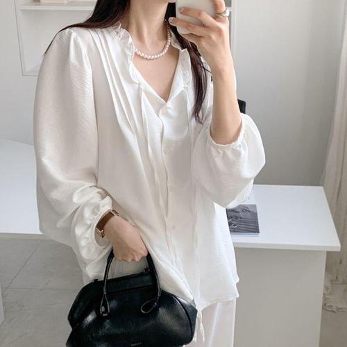 밸리걸 세이브존01 봄 가을 바스락 밴딩 볼륨소매 셔츠 블라우스 803770-1