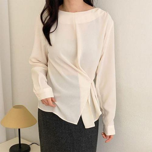 [신상오픈런]여성 시스루 랩 블라우스 입술넥 옆버튼 봄 패션