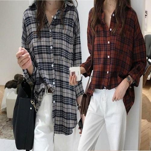 [엄지척]여자 루즈핏 봄 가을 체크 셔츠 데일리 남방_19660531_667501