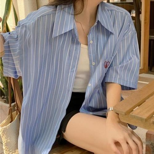 [엄지척]여자 스트라이프 스타일 데일리 반팔 셔츠 고품질 봄_19660285_667501